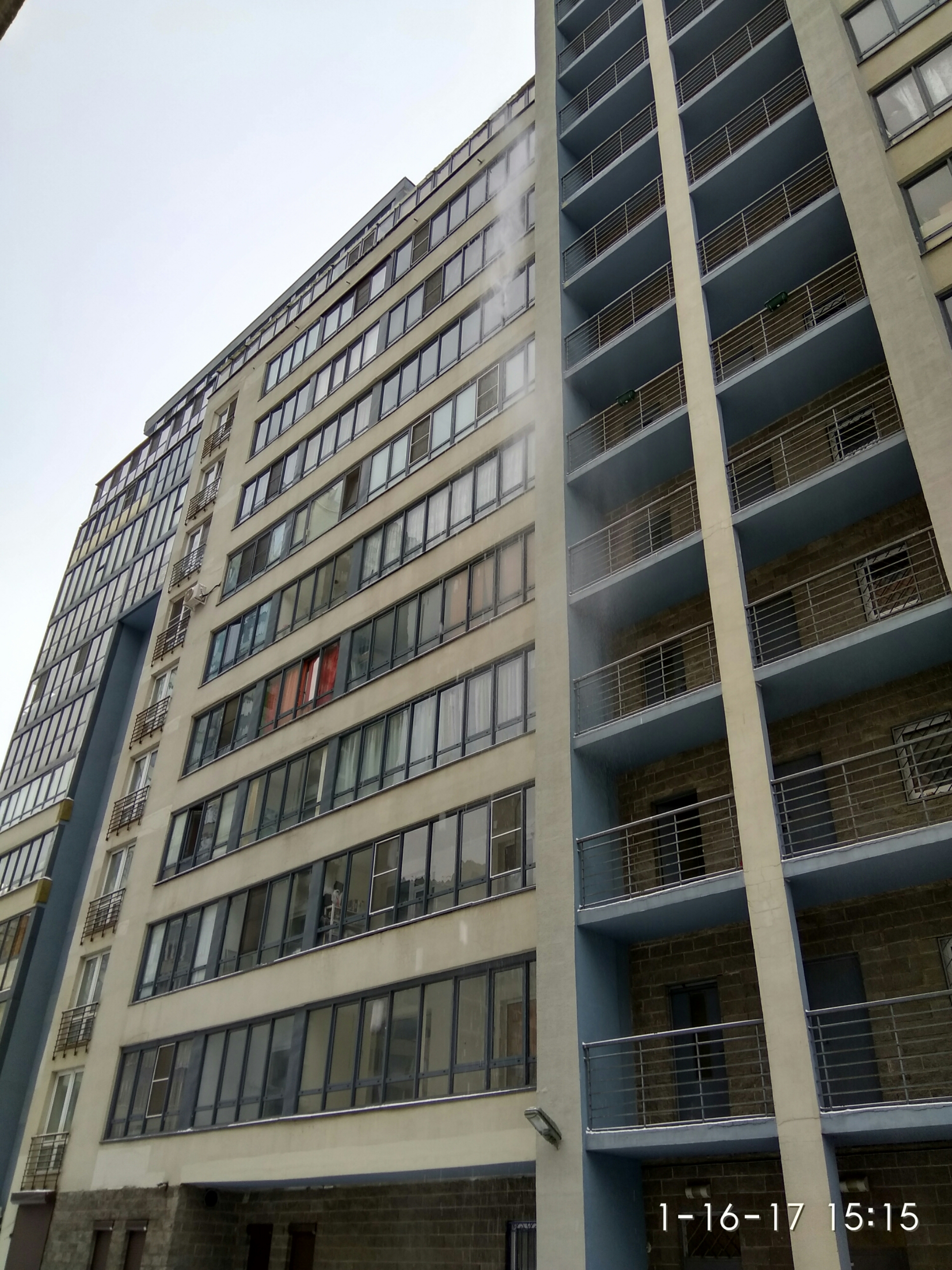 It turned out that there were icicles on the edge of the roof, about 10 stories up, and a man was on the roof sweeping the snow and icicles off the roof. If you look closely at this photo, you can see some snow and ice coming down the side of the building.