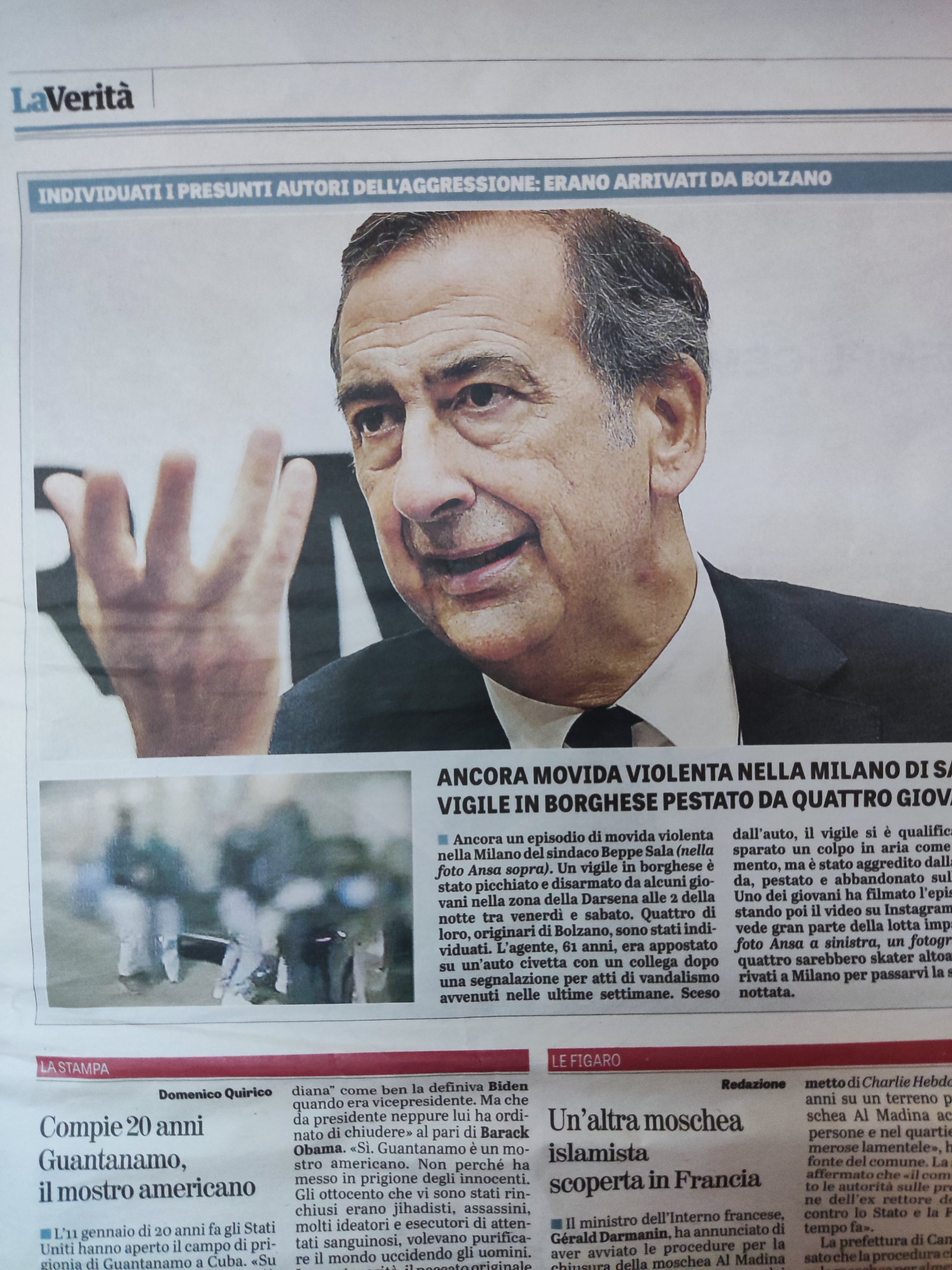 Deputy Health Minister Pierpaolo Sileri saying that unless there is a new variant of the virus, everyone in Italy will come into contact with Omicron by the end of 2022.Health Minister Roberto Speranza. This is attached to an article saying the response of the government is inadequate. I think the owner of La Verità is a Berlusconi supporter.Mayor of Milan, Beppe Sala talking about violent crime in Milan