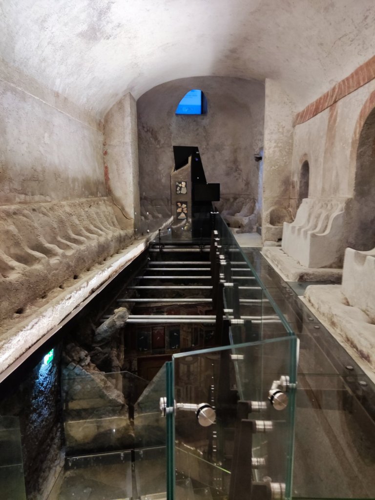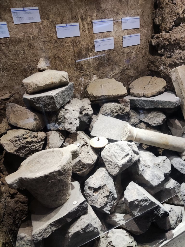 Some artifacts which were discovered in the original Roman holiday villa. The guide said that there are certainly many other Roman villas under the streets and houses of Positano but they have only been able to excavate the one under the Church of the Assumption.