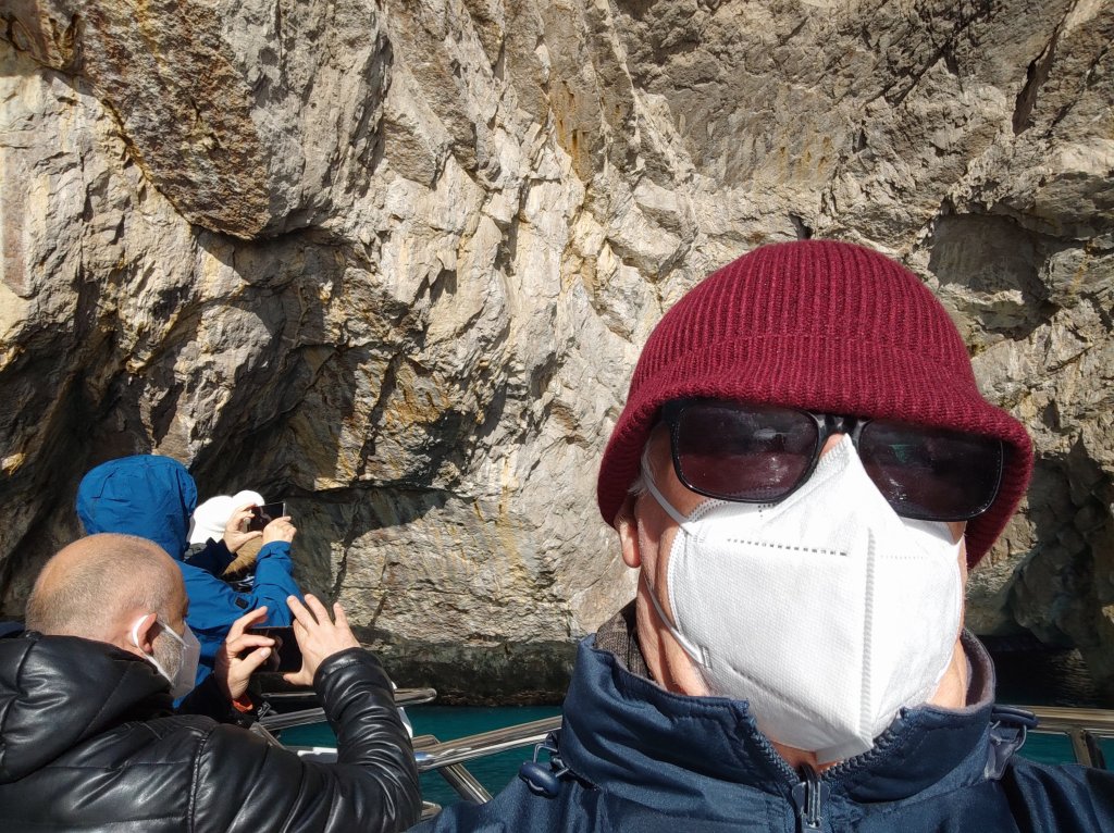 The Blue grotto is on the eastern side, but we couldn’t swim into it, thank goodness. Anyway, it was very windy and cold on the top deck, but this is the Green grotto on the sunny eastern side